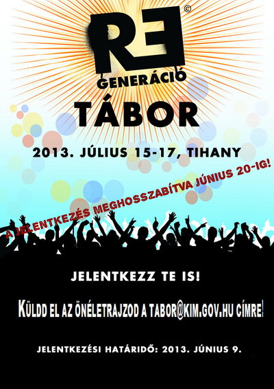 Az előző évekhez hasonlóan, idén is megrendezi a Közigazgatási és Igazságügyi Minisztérium a ReGeneráció programsorozat nyári állomását, a ReGeneráció Tábort 2013. július 15-17. között a Balaton partján a Club Tihany szállodában. A részletes program elérhető a ReGeneráció facebook-oldalán (https://www.facebook.com/regeneracio); a Tábort ismét Navracsics Tibor miniszter úr nyitja majd meg, de vendégünk lesz több államtitkár, önkéntes szervezet vezetője, olimpikon és a washingtoni Georgetown Egyetem egyik professzora is.